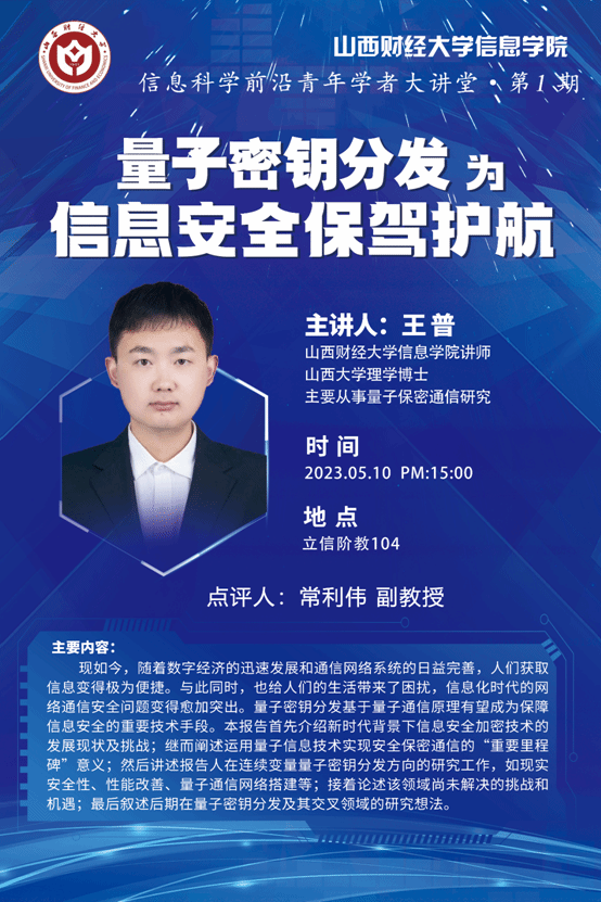 内容简介:现如今,随着数字经济的迅速发展和通信网络系统的日益完善,人们获取信息变得极为便捷。与此同时,也给人们的生活带来了困扰,信息化时代的网络通信安全问题变得愈加突出。量子密钥分发基于量子通信原理有望成为保障信息安全的重要技术手段。本报告首先介绍新时代背景下信息安全加密技术的发展现状及挑战;继而阐述运用量子信息技术实现安全保密通信的“重要里程碑”意义;然后讲述报告人在连续变量量子密钥分发方向的研究工作,如现实安全性、性能改善、量子通信网络搭建等;接着论述该领域尚未解决的挑战和机遇;最后叙述后期在量子密钥分发及其交叉领域的研究想法。