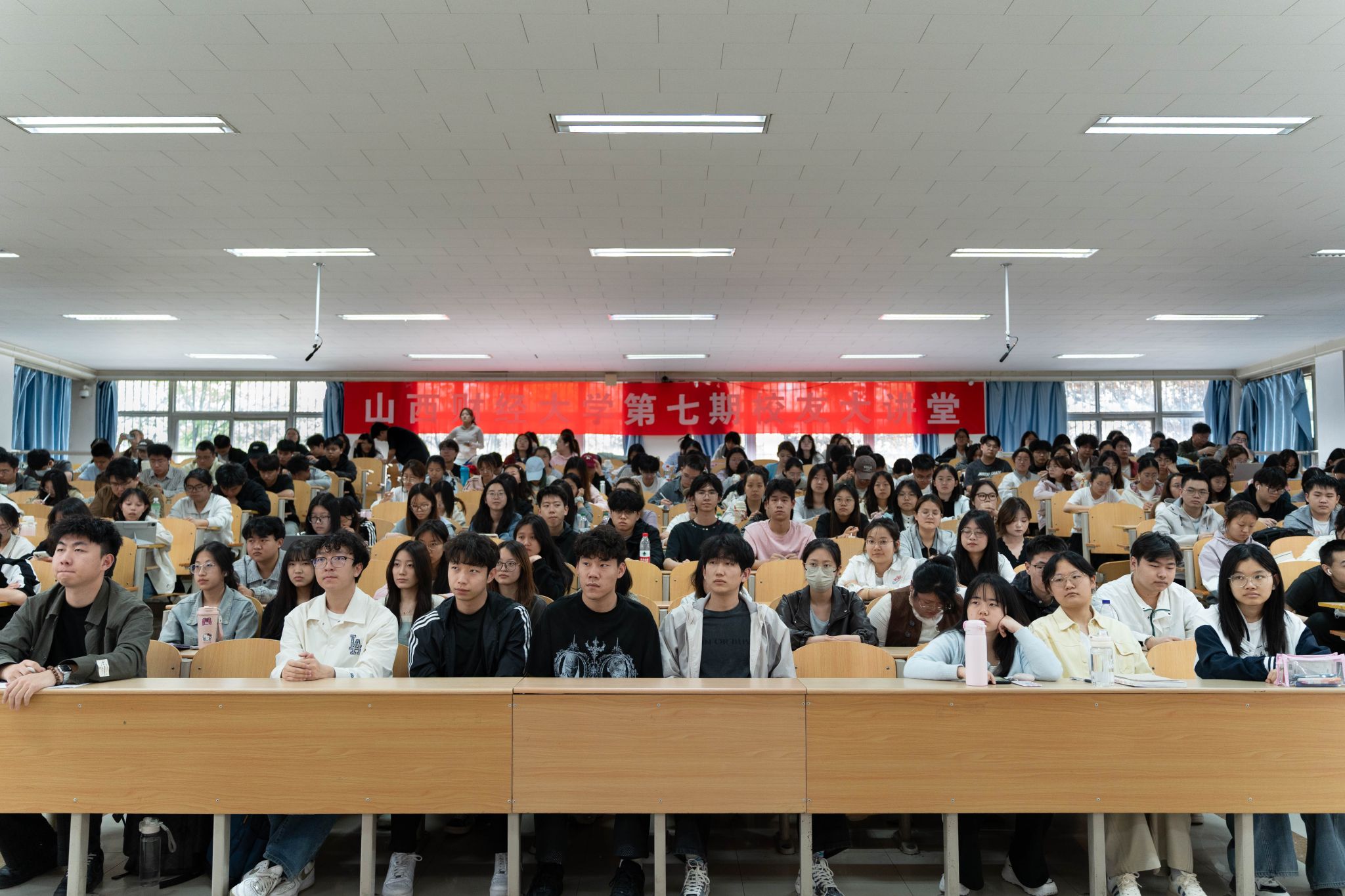 两百余名本硕学生聆听报告,国内交流合作部(校友工作办公室)负责人参加活动。