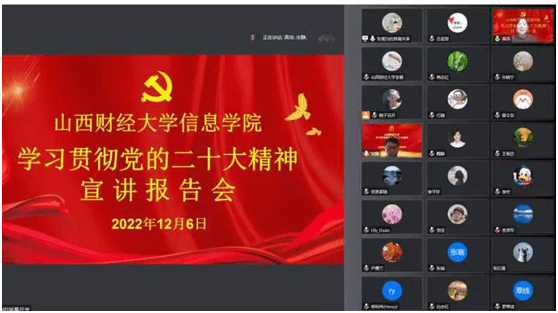 召开学习贯彻党的二十大精神宣讲报告会。马克思主义学院宋静副教授做了题为《党的二十大报告经典研读》的报告,学院党委书记高萍主持,学院班子成员、全体教职员工聆听了报告。